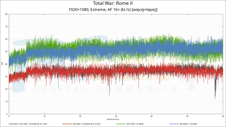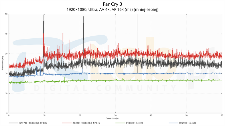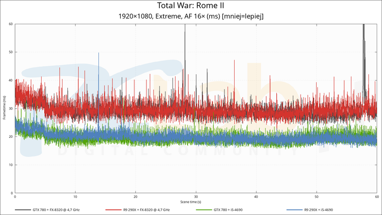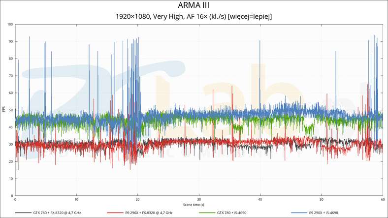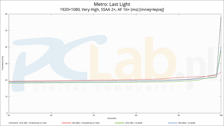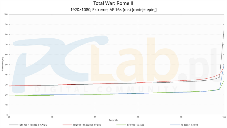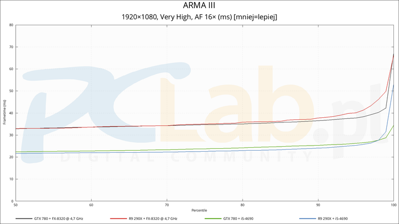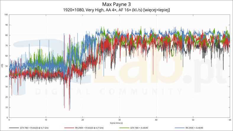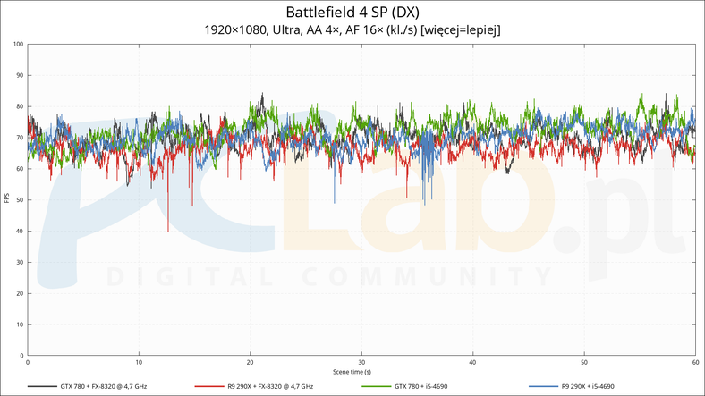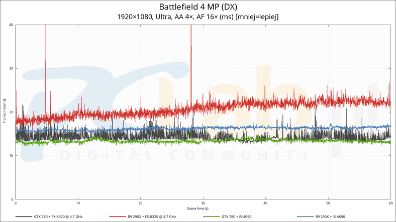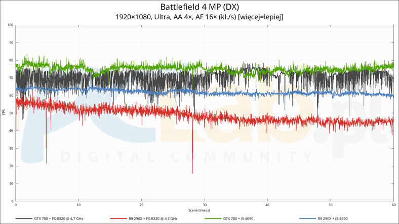 Radeon R9 290X w trybie Mantle oferuje wysoką wydajność. Konkurencją może być jedynie Core i5 + GeForce GTX 780, który uzyskuje podobną wydajność w DirectX (optymalizacje wprowadzone przez Nvidię w ciągu ostatnich miesięcy pozwoliły zniwelować większość przewagi Mantle). Radeon bez pomocy nowego API AMD jest wyraźnie słabszy. Na konfiguracjach z procesorem AMD FX stabilność animacji jest zauważalnie gorsza.