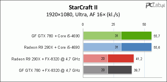 Gracze w StarCrafta II powinni zwrócić uwagę przede wszystkim na procesor: zestawy z podkręconym FX-em są znacznie gorsze od konfiguracji wykorzystujących procesorem Core i5. Istotnych różnic między kartami graficznymi nie zaobserwowaliśmy.